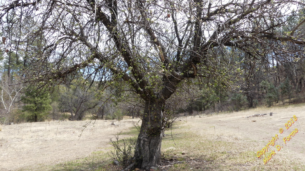 While the trees appeared dead from a distance, there were new blooms on the apple trees.