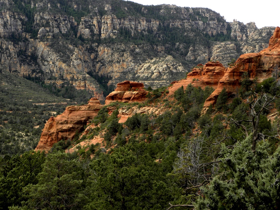 The rounded shapes of red rock along Munds Wagon trail, with the towering flanks of Munds Mountain in the background.