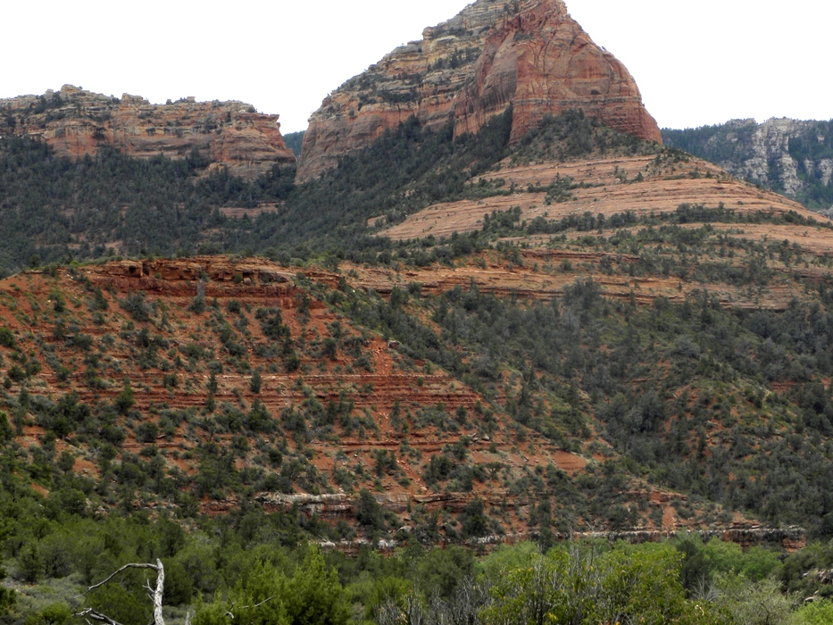 A final view from Route 89A. The Damifino section of the loop runs from the right side on the terraced slope down to and across the mound on the left side.