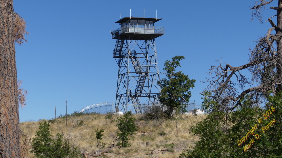 Aztec Peak fire tower. I believe electronic monitoring technology is in use as the tower is no longer staffed by Forest Service personnel.