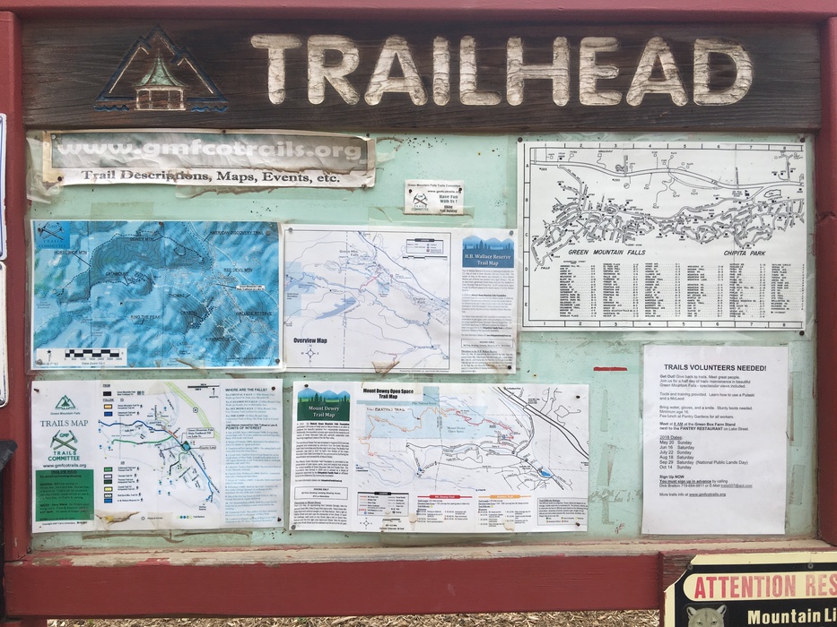 Trail maps at Kiosk. Dewey has a connector trail now. There is an old trail that continues all the way from Dewey Peak to Catamount Reservoirs. It was posted on the map so I took it and it seemed like a nice trail shortly after Dewey trail was completed. Apparently other people saw the same map as I did at the trailhead and were being confronted and turned around by an armed landowner.