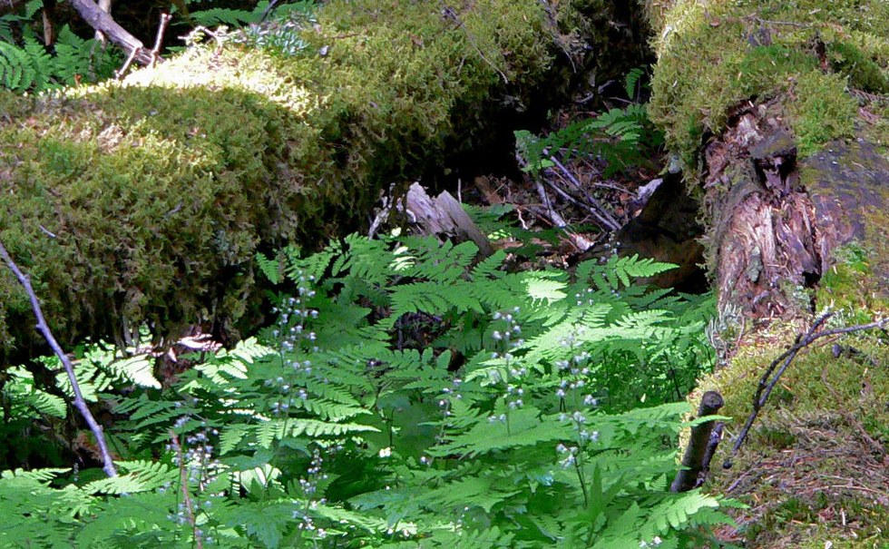 Here is quite a variety of green plants but I liked these white tear-like plants amongst the ferns.