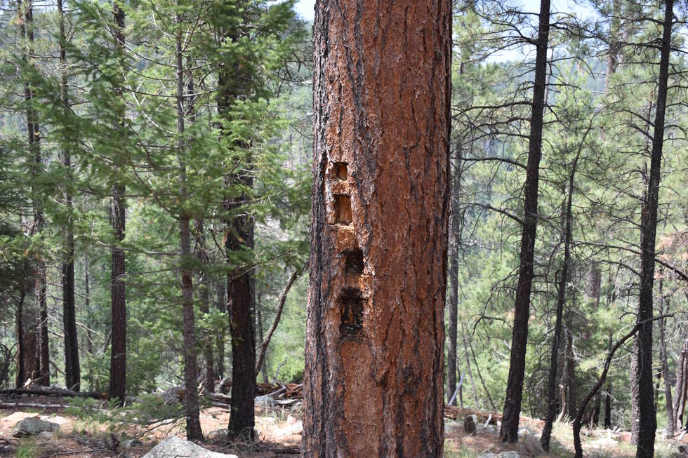There was one blaze that was very useful, the trail was very faint here covered in pine needles and when I saw this blaze I knew the trail turned left. The trail makes an abrupt left turn as the trail does a switchback down into Barbershop Canyon.