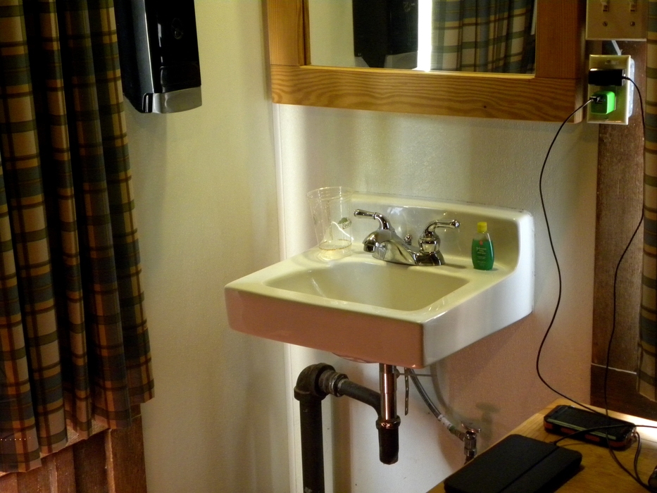 The sink at a Phantom Ranch cabin. No hot water, but with the accompanying toilet (I decided not to post the picture of that, but equally basic but functional) enough to eliminate the need to visit the shower house often. Also electrical outlets. But no cell service, at least during our visit to Phantom Ranch, from our carrier.