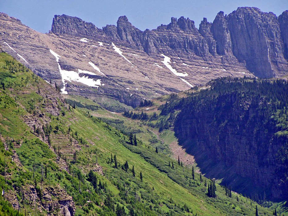 This is looking back at the Garden Wall. If you were at the notch on top of the wall, you would be looking over into the Grinnell Glacier/Swiftcurrent Valley area of Many Glacier.