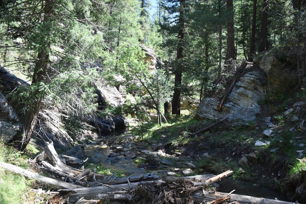 This is where I exited the canyon to the west. The rocks start encroaching on both sides of the canyon making it difficult to navigate without getting in the water. By the looks of the fairly obvious route up the side of the canyon it would appear even the elk exit at this point
