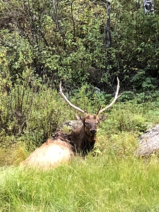 As you can see on his back he is wounded badly and has been for quite some time indicated by the non typical white antlers and malnourished body.
