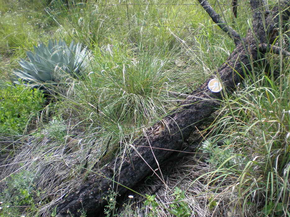 We went back to the Rice Peak intersection and started again. There was a gate in the fence near there, but that wasn't the trail. We kept going and noticed this trail marker lying in the grass. OK, somewhat of an excuse. We headed a little bit further east and found the right gate.