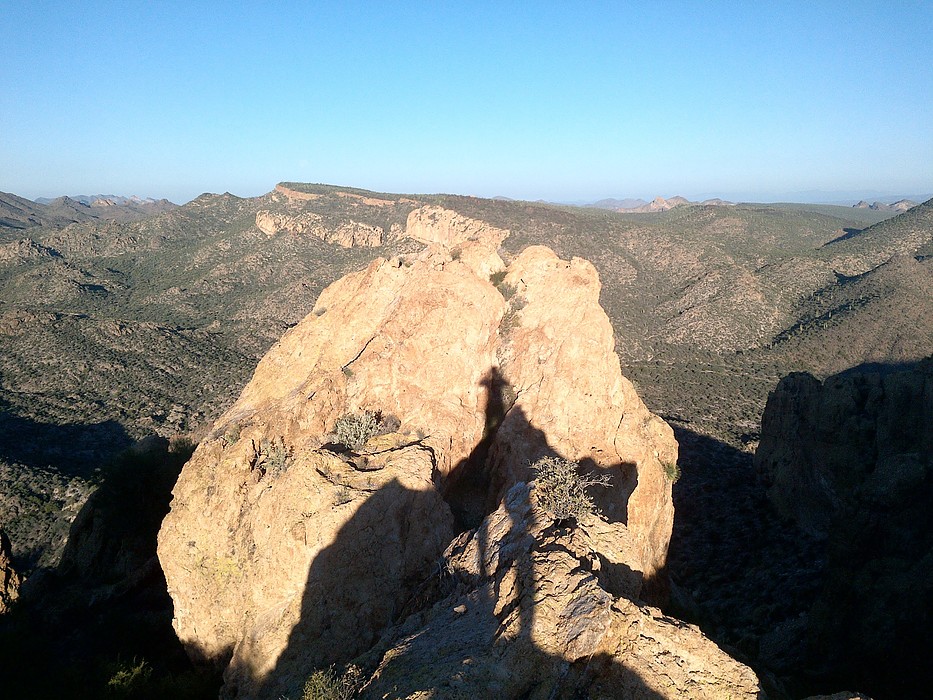 Looking at the high point of Palomino Mountain. Accessible with a small down climb. Decent exposure on both sides.