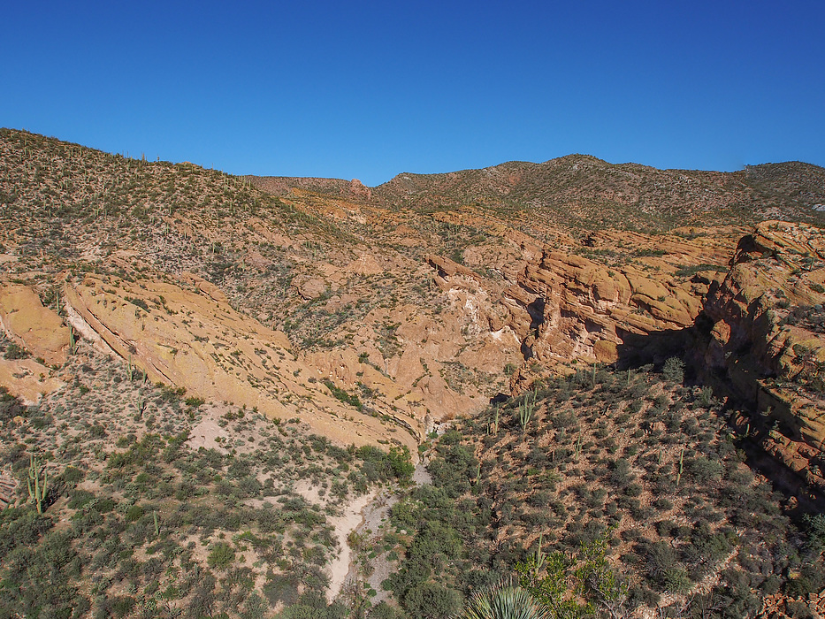 View NNE up the canyon to where it makes a bend to the east through a narrow slot in the cliffs.