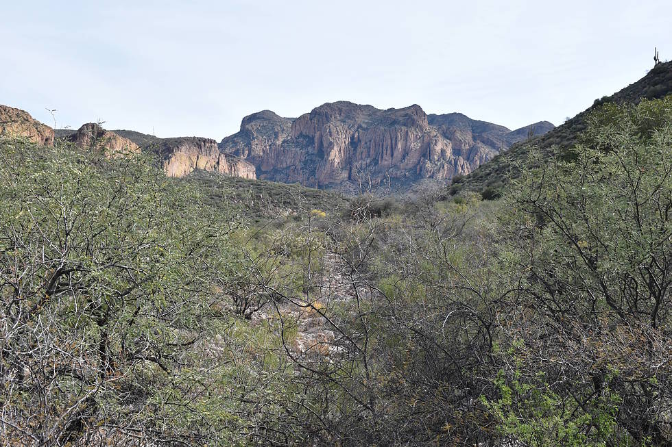 Coffee Flat Mountain. The Red Tanks Trail will follow LaBarge Canyon to the left below Coffee Flat Mountain and the whiskey Spring Trail will head to the right up Whiskey Spring Canyon.
