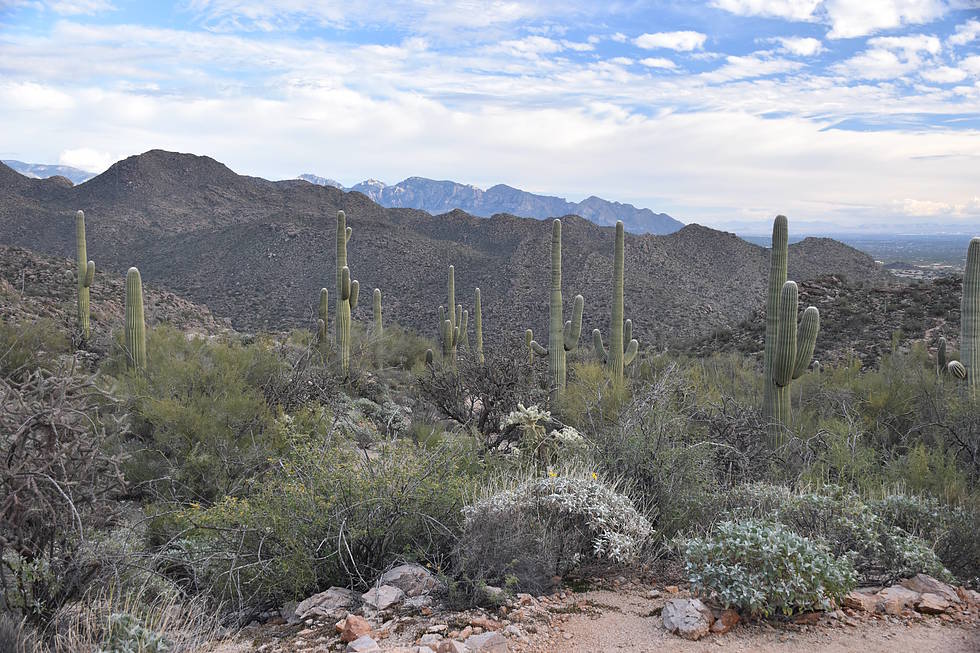 Coming upon Wild Burro Canyon and my destination.Catalina Mountains in the distance.