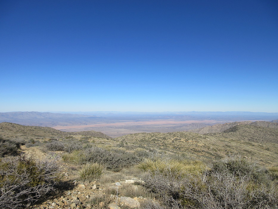 Dry ridges of high desert set against a sea of drier desert valleys and farms.