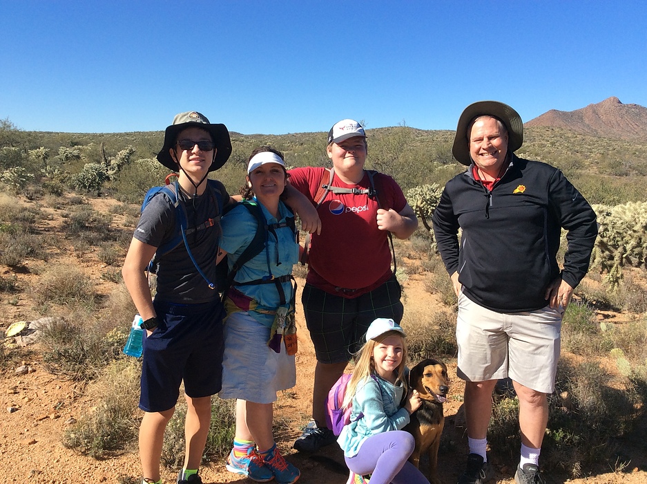 The Housholder Family Saunterers...Thanks Sequoia for taking this picture of us starting our hike from Dodson Wash towards Antelope Peak and the Freeman Trailhead. Thanks to for shuttling our RAV4 back to Freeman for us as well Sequoia!