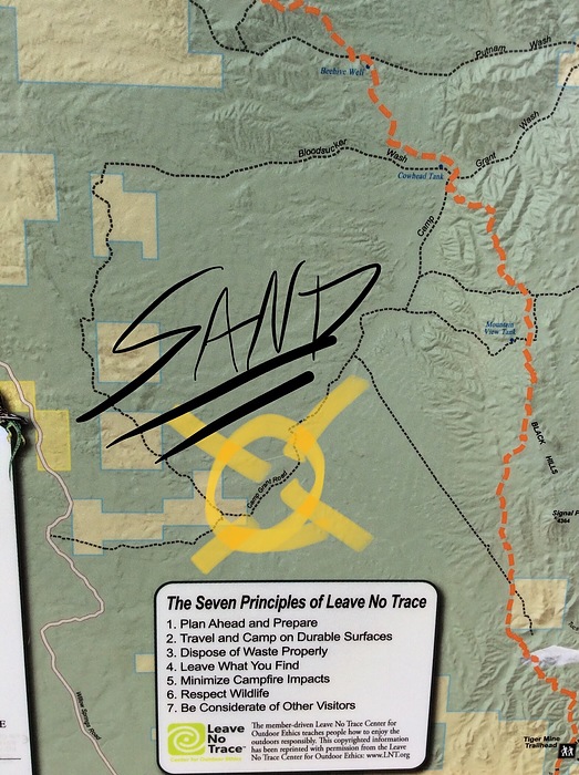 Beware of some deep sand on this route from Willow Springs Road! We almost got stuck in our Toyota Tacoma 2WD Truck with TRD package. I used the differential lock to get us out of that mess and save the day just a few hours before a rain storm came in!