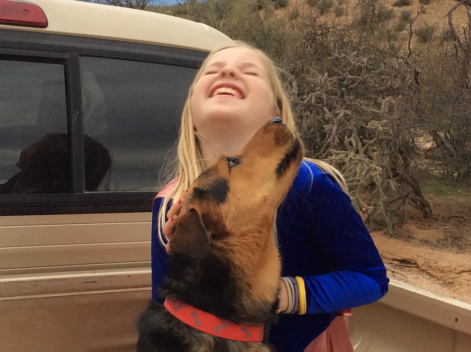 Bianka and Fenix having fun in the back of the Tacoma on the Gapgage Wash Route.