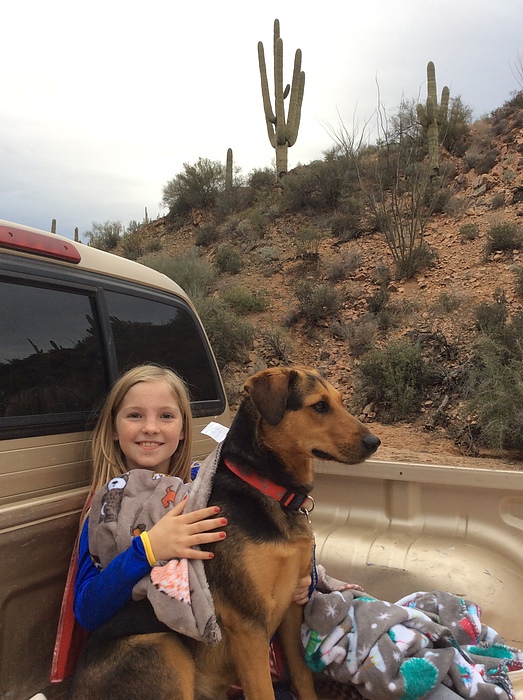 Bianka and Fenix having fun in the back of the Tacoma on the Gapgage Wash Route.