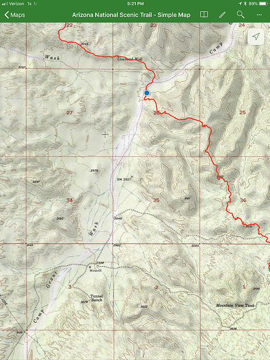 A small obstacle from Gapgage is a short bump down into Camp Grant Wash after that the road is easy going up to the AZT Crossing! GPS locator comes in Very handy out here! We like using the ArcGIS Explorer App with the Pre-Loaded Arizona National Scenic Trail!