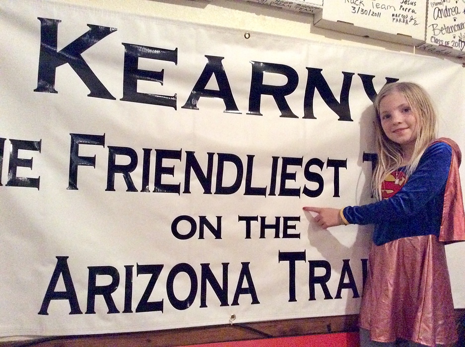 Super Girl Bianka at Kearny, the friendliest town on the Arizona Trail! After exploring we headed home through Kearny and Old Time Pizza!