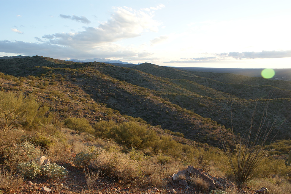 Rolling hills high above Camp Grant Wash and Oracle Ridge in the distance.