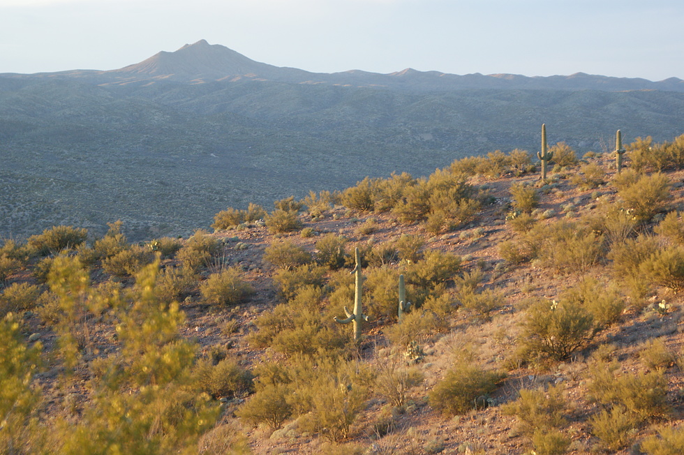 Enjoying a beautiful sunset view 700 feet above Camp Grant Wash towards Antelope Peak near Freeman Road looking north!