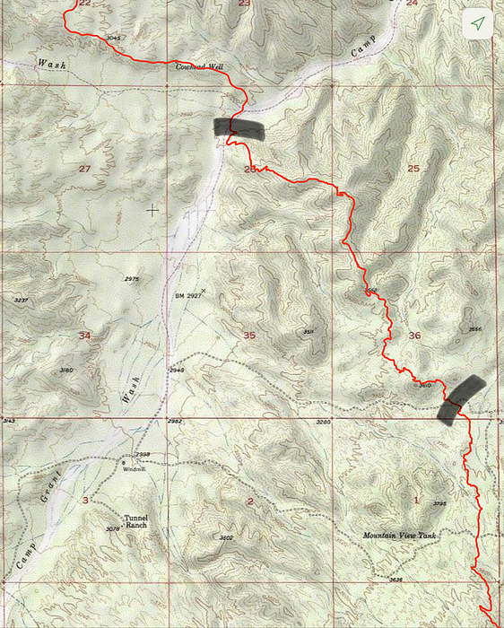 Gapgage to Camp Grant Wash on the ArcGIS App of the Arizona National Scenic Trail