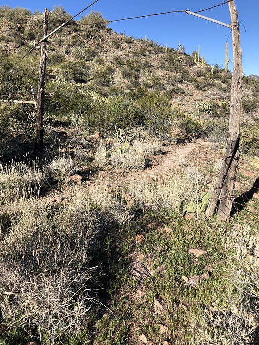Gate opening in a barbed wire fence along the Limestone Trail.
