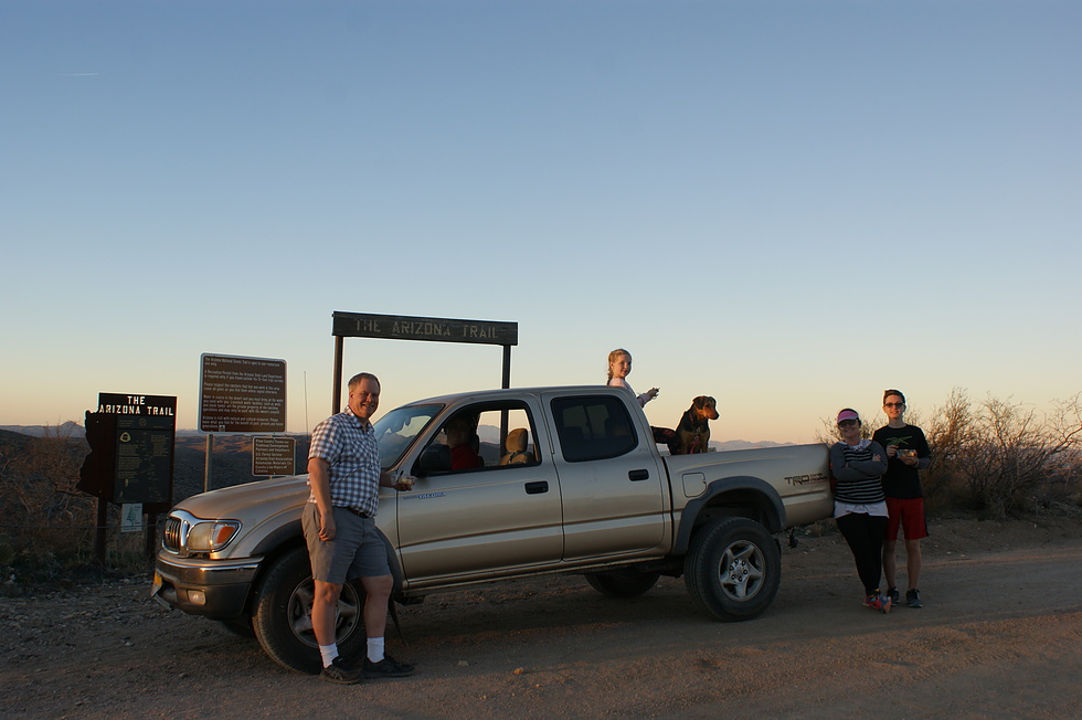 The Housholder Family Saunterers with Fenix the Arizona Trail Dog at the Tiger Mine Trailhead Start of Passage 14: The Black Hills.