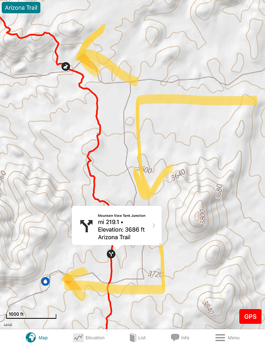 From 212.4 until 219.1 the North Spur Backroad cuts this segment down to 7.4 miles until Mountain View Tank access by Gapgage Wash Backroad.
