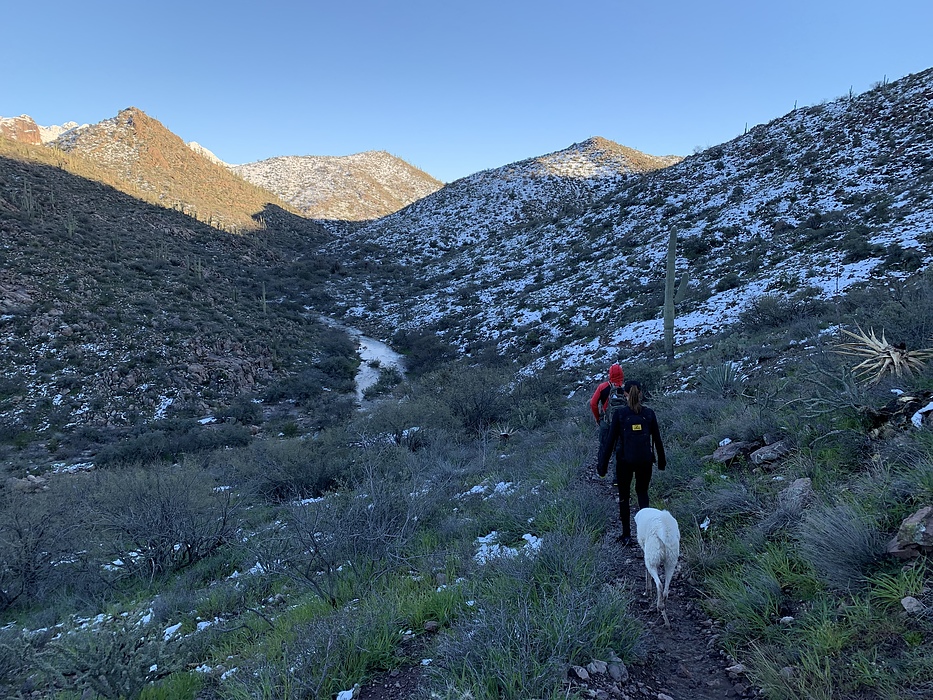 Approaching snow as we near the junction of Dutchman and Bluff Spring Trail. Here is a good example of the difference between south facing (left) and north facing (right).