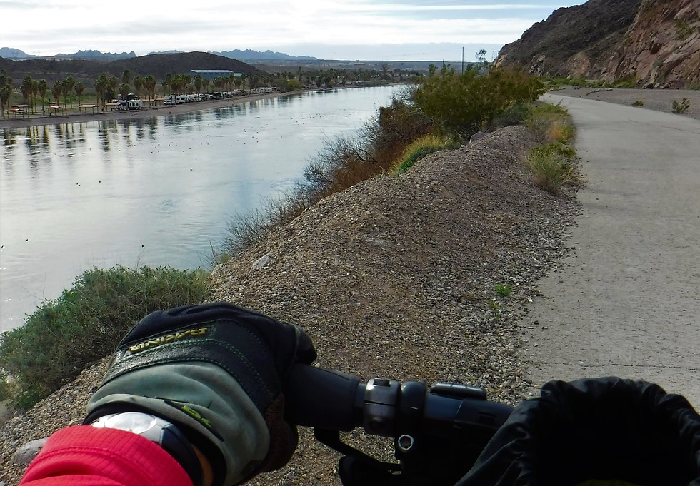 Back on the river path, heading south toward Laughlin. Davis Camp, a campground of Mohave County, Arizona, is across the river.