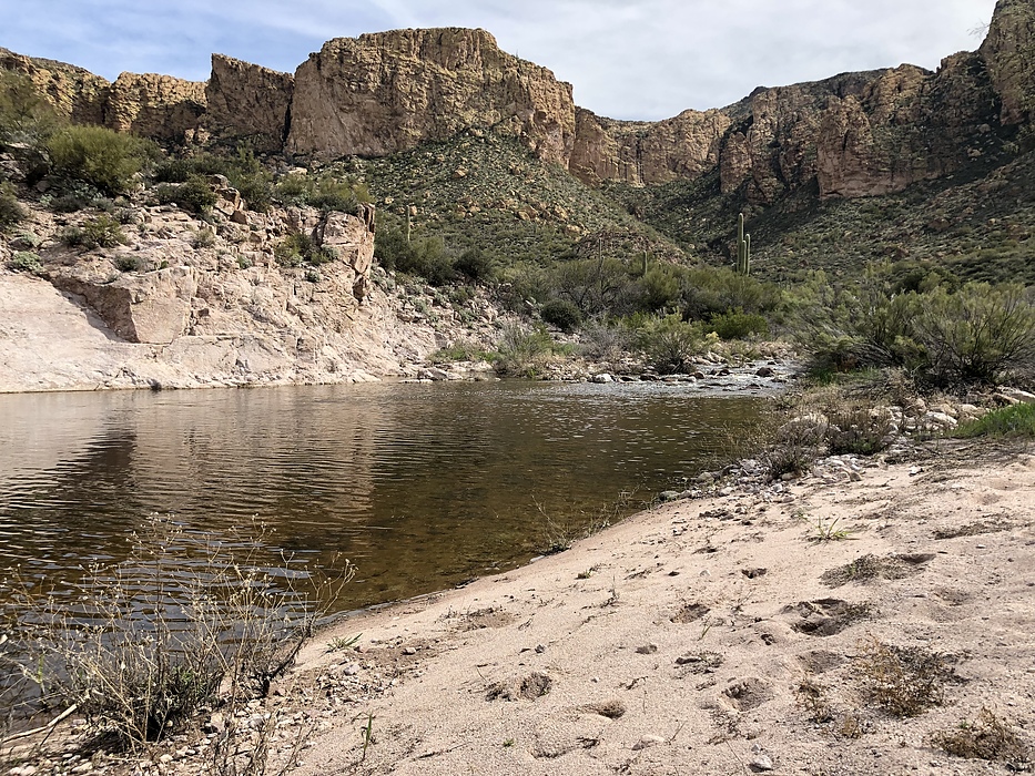 Deep pool, sandy beach, great campsite, fantastic view to all sides. YAY!