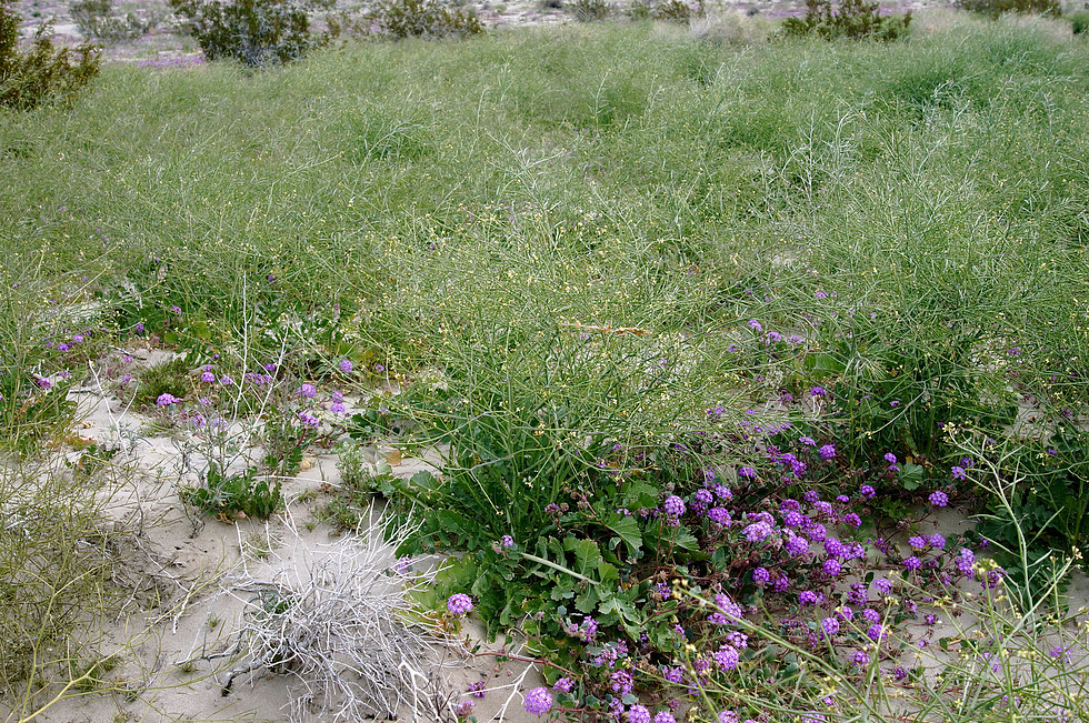 unfortunately the large invasive Sahara mustard plants are all over the place and throttle the native species such as this sand verbena in much of the park