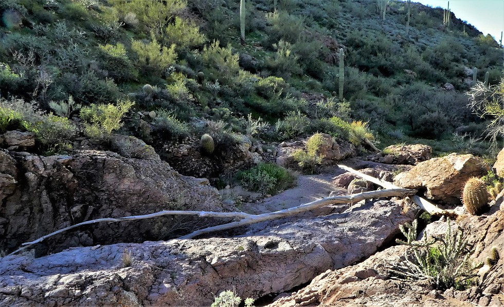 Okay, we are heading back to the TH and wondered how these and a few other long white logs got all the way here. This is a very narrow area with lots of bumps. The water flow had to be incredible. Also, where the devil did they come from? I don't see any trees of this size anywhere in this area.