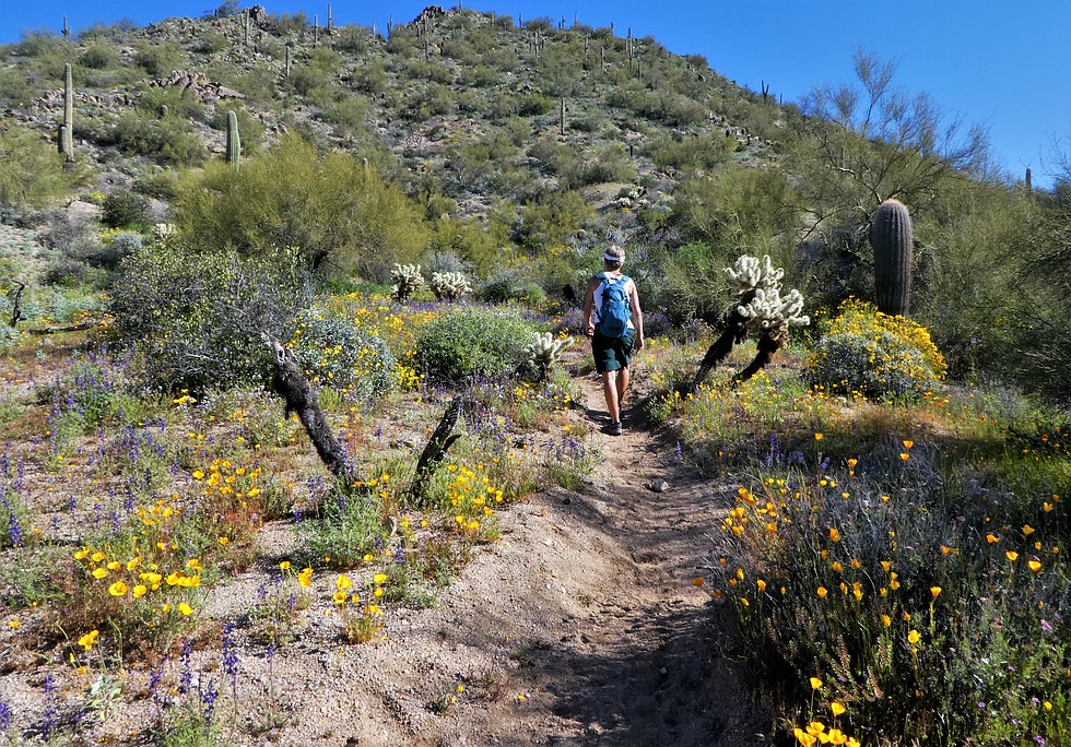 we are at ground level and the desert was putting on a very colorful show for the next mile or so. All of the usual wildflower suspects.