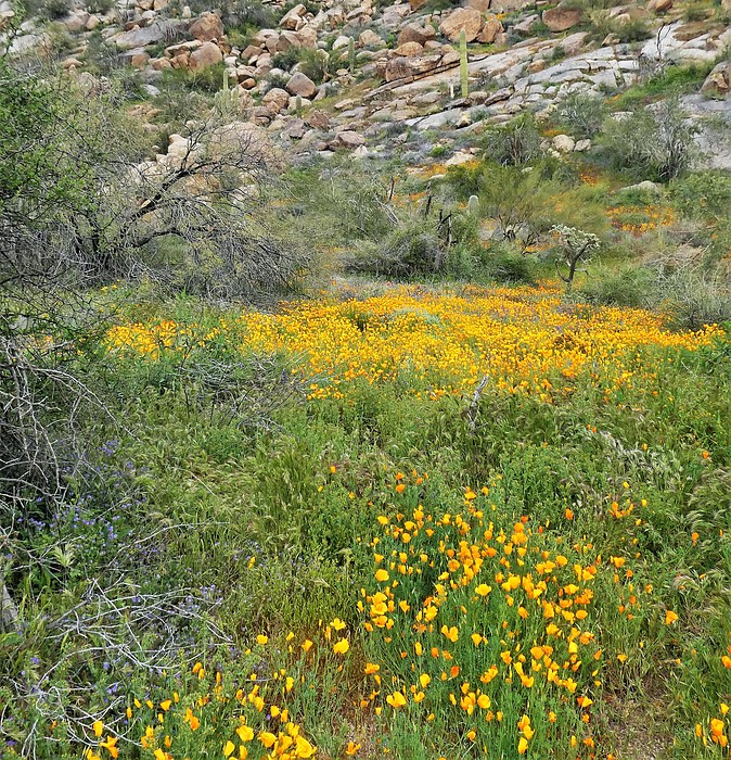 another stream coming down from the mountainside. Poppies went all the way up here.