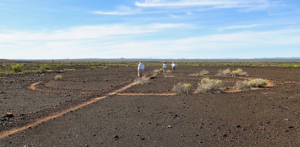 An aerial "compass" dug into the basalt pebbles. Our best guess was WW2 (or earlier) vintage.