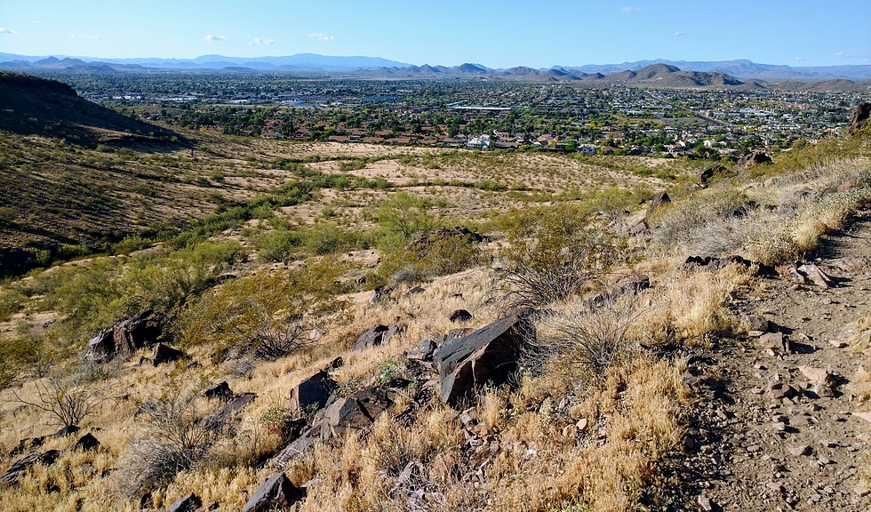 the coyotes were calling from way down there. The desert sure dried up fast. Also noticed there are only about 4 saguaros in this area. This is looking North.