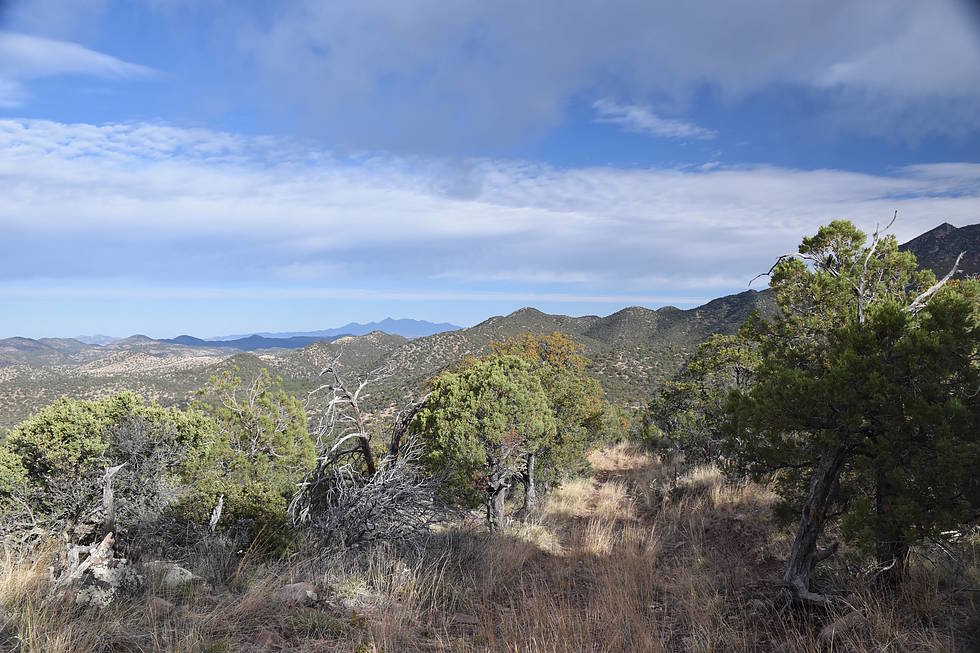 Trail follows the old road to the Eureka Mine. Santa Rita Mountains in the distance.