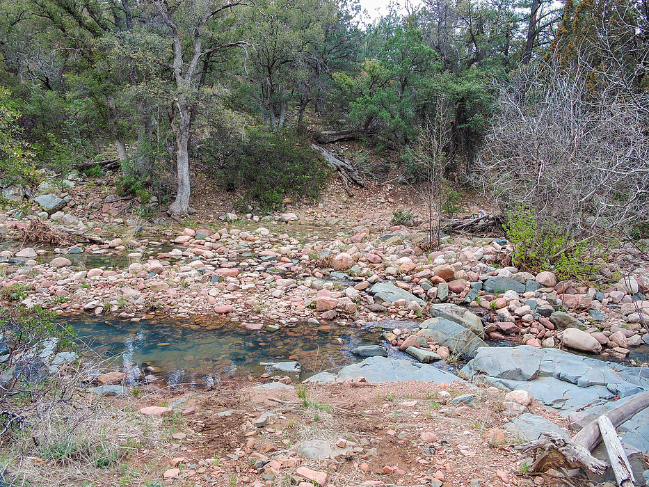 The extension of FR2747 4x4 road where it crosses Turkey Creek. The FS maps on HAZ do not show this section of that road. This was a dry crossing when GH and I were here in Nov 2018.