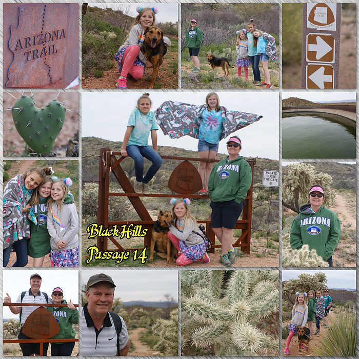 The Housholder Family Saunterers together with Fenix and Bianka’s friends Abby and Melanie had a fun Saturday in the Black Hills north of Oracle hiking around the Mountain View Tank area up past Gapgage Wash an out and back total of three miles but only one trail mile.