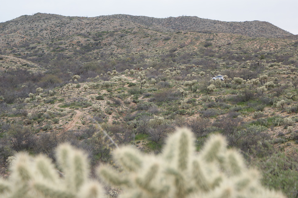 Looking back towards the Mountain View Tank backroad where the AZT crosses, look close to see the gate!