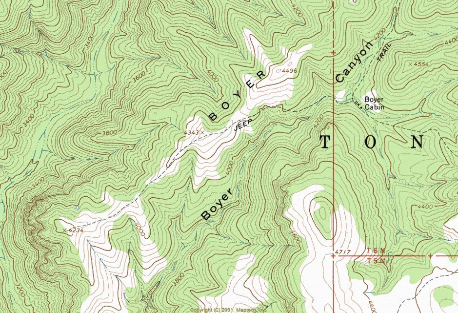Boyer Ridge Trail (route is a closed jeep trail that starts behind the coral area of Boyer Cabin and heads southwest)