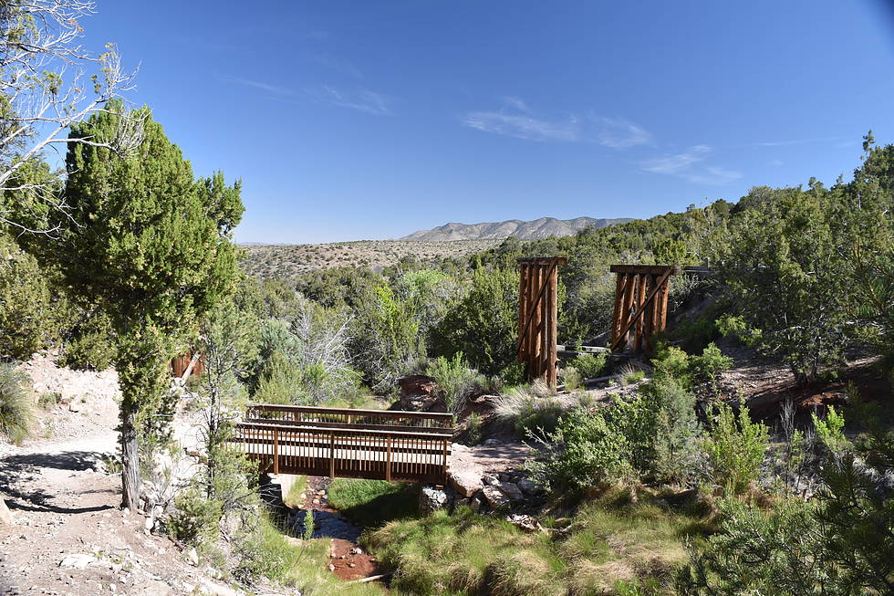 The only places on the trail where the grade changes from the constant 170ft/mile is at these crossings where the trail drops into the creek bed then back up to the track bed. This is the same creek that will flow over Bridal Veil Falls in Salado Canyon.
