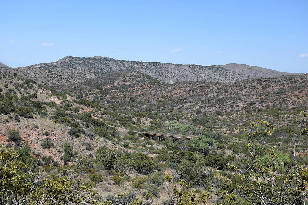 Another closer view of the Salado Canyon Bridge. Now if this was a hiking trail the trail would just head down to the bridge but since a train had to do it the trail follows along around a hill on the left side of the photo then continues on to the bridge.