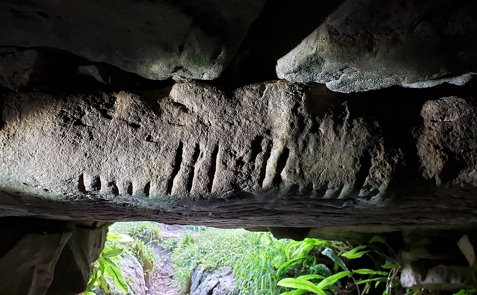 We did a wonderful tour out of the Rathcroghan Visitor Center which included a trip to neolithic mounds and a descent into "Cave of the Cats" which includes this lintel with ca. 5th century Ogham "writing". https://www.rathcroghan.ie/