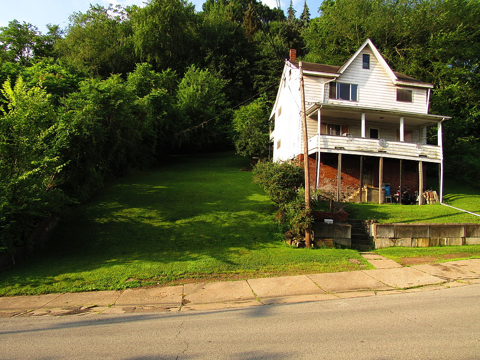 The trail also follows some two lane paved roads through the hills as it connects to the forested areas. My aunts used to live in this house on the 2nd floor. They used to babysit me in the morning before I went to kindergarten. My uncle told me that the clearing used to go all the way to the top of the hill where there was an apple orchard. A few times in the winter we would use this clearing for sled riding.