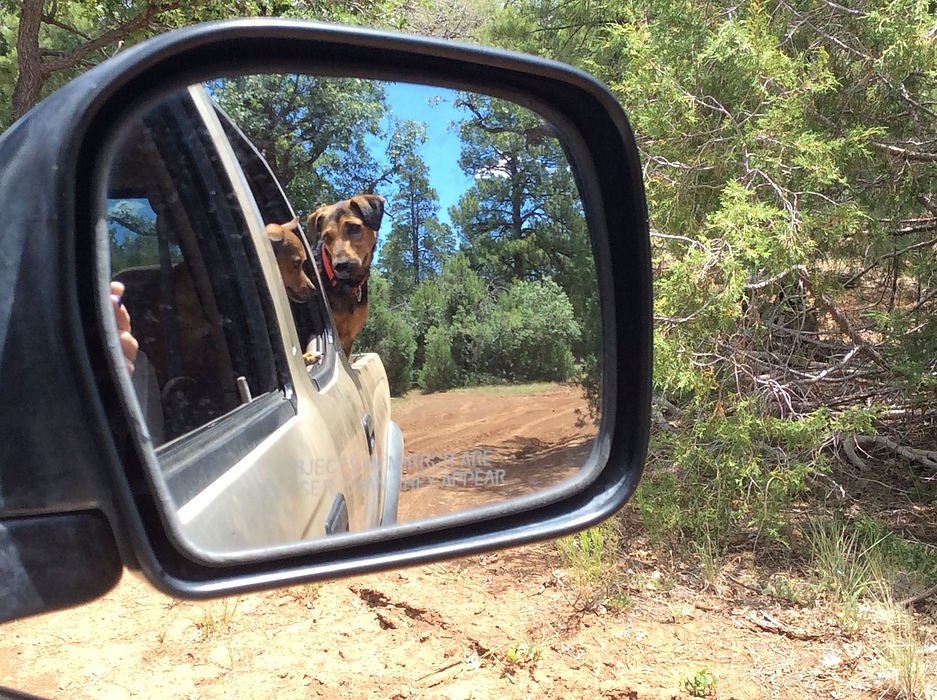 Fenix looking at Riley sitting in front!