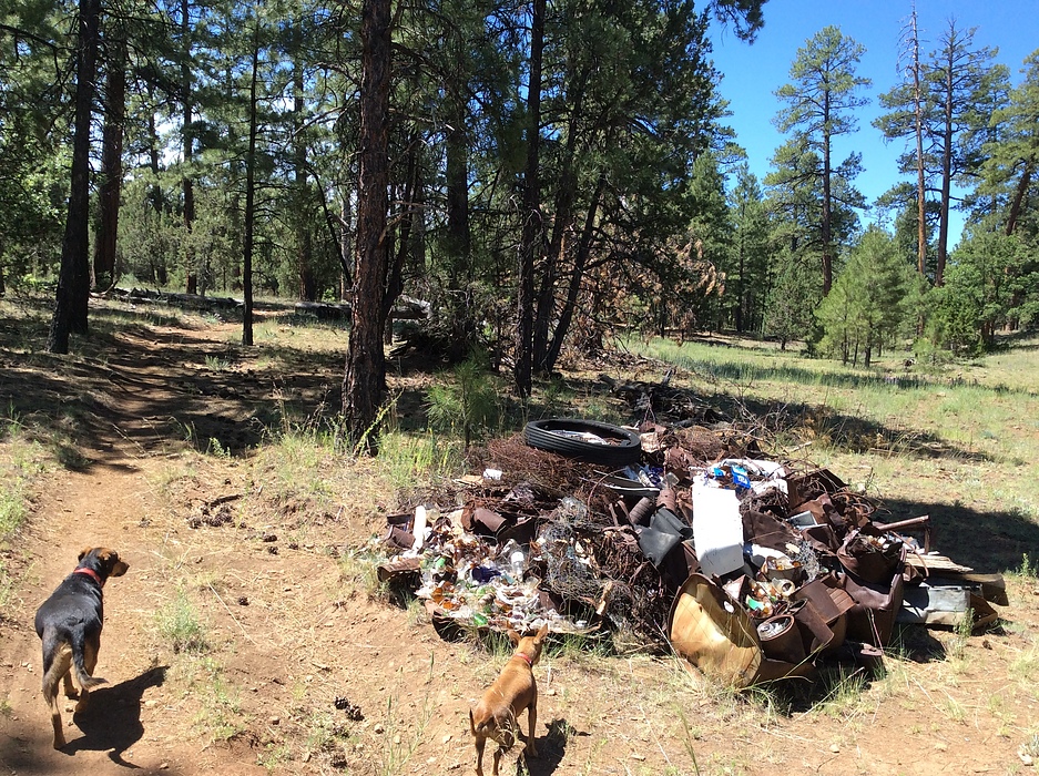 This large truckload, pile of garbage was dumped next to the AZT nearby the Walnut Canyon Monument Road. It might be easier to get to the dump spot off the Old Walnut Canyon Road 303. I marked the location at NOBO 573.6 so the AZT could dispatch some volunteers!