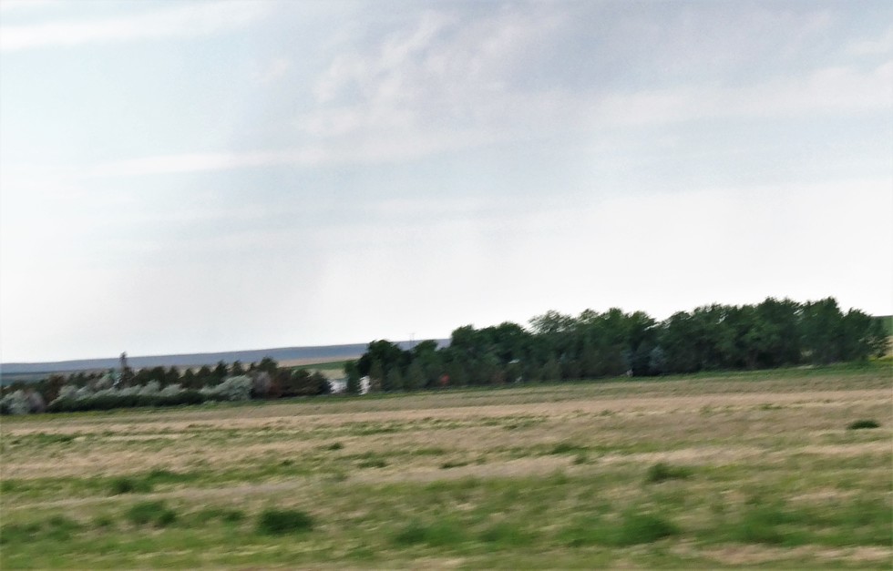 My camera does terrible in low light. Anyway, this is the original 1913 homestead where my cousin Kenny lives and farms. Surrounded by all those trees where there were none in 1959 (see next photo). He just sold out all his cattle in the spring. He is in his 70s so it's a bit much for him. Sadly when they were loading them up, a cow charged his wife Greta. She is lucky to be alive. She doesn't remember it which is a good thing or she probably wouldn't look at steak ever the same.